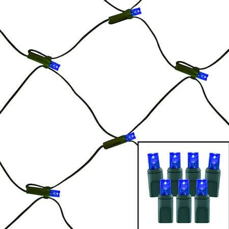 Blue LED Net Lights – Pro Series – 5mm WAC (100L, 9.6 watts) – Net size 4′ x 6′ – 22 Gauge Green Wire