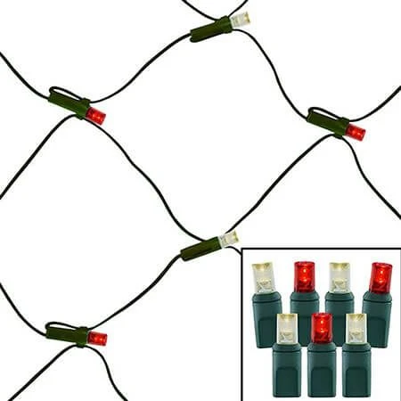 Warm White & Red LED Net Lights – Pro Series – 5mm WAC (100L, 9.6 watts) – Net size 4′ x 6′ – 22 Gauge Green Wire