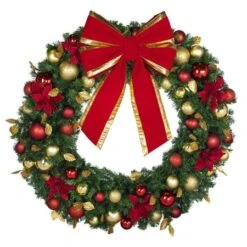 48″ Unlit Decorated Wreath – Traditional Décor – Bow Option Available